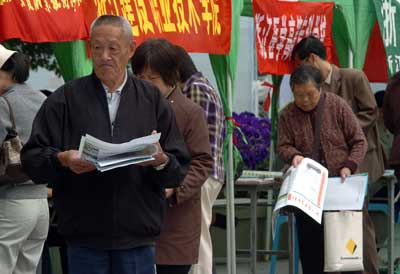 現場諮詢的人表示說,如果要想被錄取,至少要高出一本錄取線30到50分比較保險。記者在現場告訴這位家長,其實像西南財經大學等外地的財經類院校也很不錯,可以讓孩子多一個選擇。但是該女士斬釘截鐵地說:『我們就希望孩子能上中央財經大學。我侄女就是那個大學畢業的,現在在一家證券公司,月收入非常高,所以我兒子早就把中央財經大學當作了自己的目標。』記者在現場發現,確定惟一考試目標的家長還為數不少。